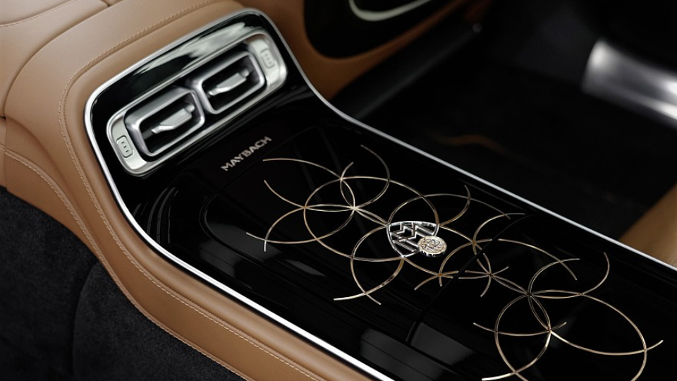 کنسول میانی سرنشینان ردیف عقب نیز با نقوش دایرهای از جنس طلا تزئین شده است. بنابر اعلام مایباخ، این بخش به صورت دستی و با صرف 7 روز زمان، ساخته شده است. گذشته از این باید به گیلاسهای نوشیدنی از جنس نقره، محفظه کلید و فضایی برای لوازم کوچک، اشاره کرد.
